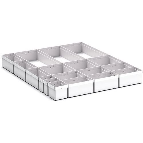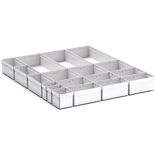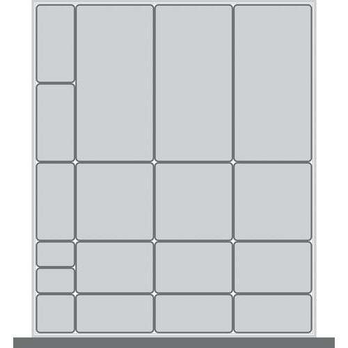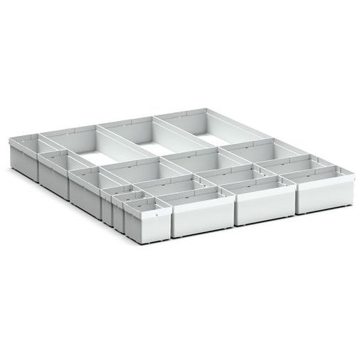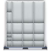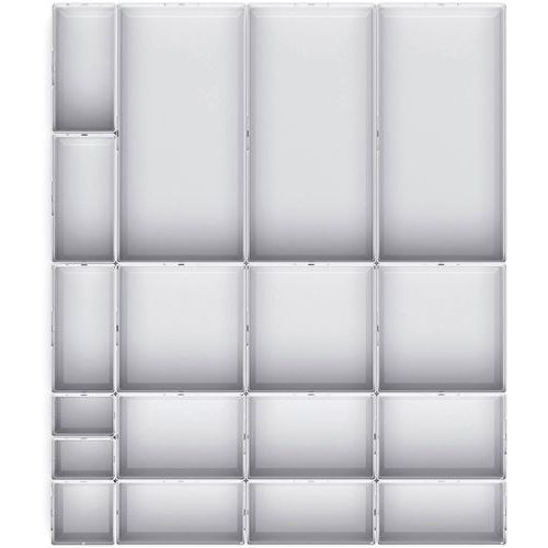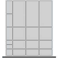 | Productnaam | Assortiment EKK-67100. 18 kleingoedbak, Breedte: 650 mm, Diepte: 750 mm, Hoogte: 100 mm, Kleur: Lichtgrijs |