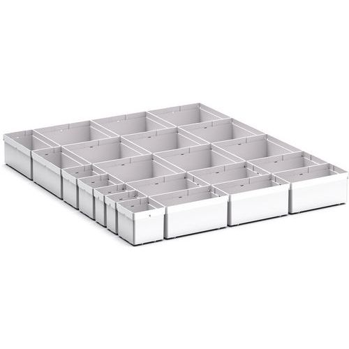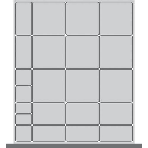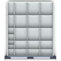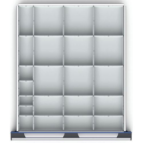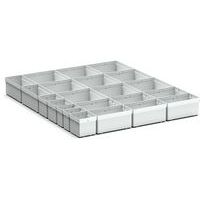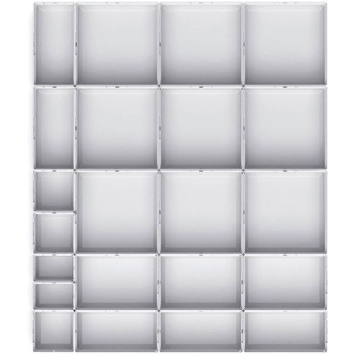 | Productnaam | Assortiment EKK-67100. 22 kleingoedbak, Breedte: 650 mm, Diepte: 750 mm, Hoogte: 100 mm, Kleur: Lichtgrijs |