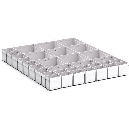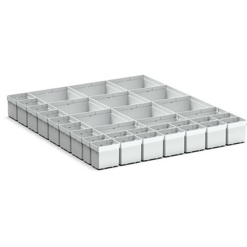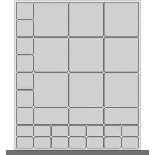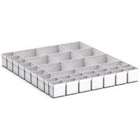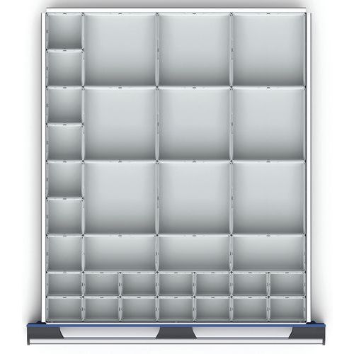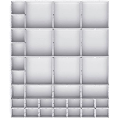 | Productnaam | Assortiment EKK-67100. 33 kleingoedbak, Breedte: 650 mm, Diepte: 750 mm, Hoogte: 100 mm, Kleur: Lichtgrijs |