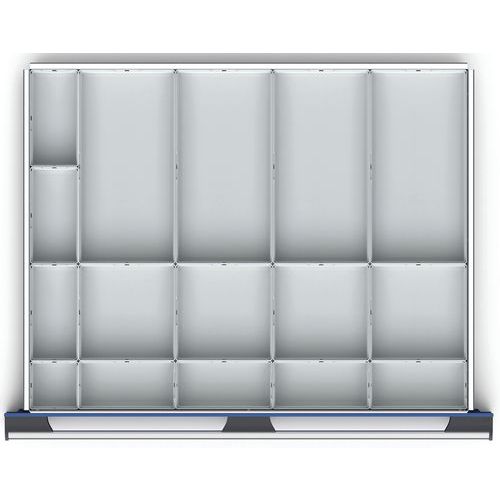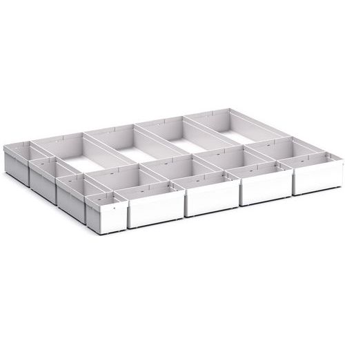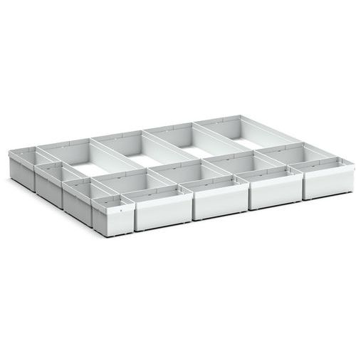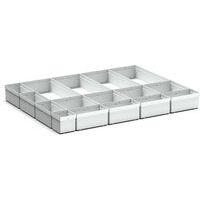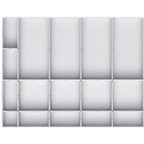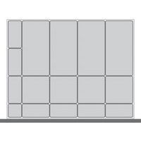 | Productnaam | Assortiment EKK-86100. 16 kleingoedbak, Breedte: 800 mm, Diepte: 650 mm, Hoogte: 100 mm, Kleur: Lichtgrijs |