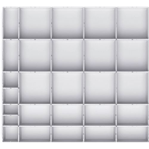| Productnaam | Assortiment EKK-87100. 27 kleingoedbak, Breedte: 800 mm, Diepte: 750 mm, Hoogte: 100 mm, Kleur: Lichtgrijs |