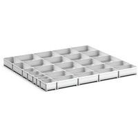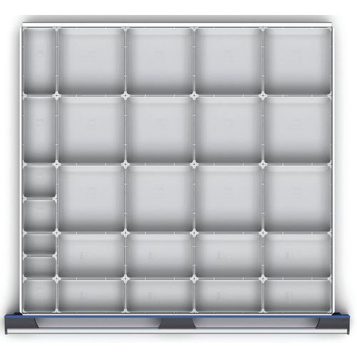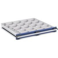 | Productnaam | Assortiment EKK-8775. 27 kleingoedbak, Breedte: 800 mm, Diepte: 750 mm, Hoogte: 75 mm, Kleur: Lichtgrijs |