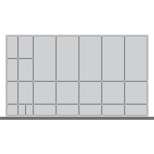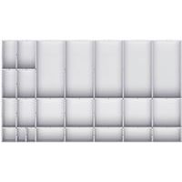 | Productnaam | Assortiment EKK06100. 24 kleingoedbak, Breedte: 1050 mm, Diepte: 750 mm, Hoogte: 100 mm, Kleur: Lichtgrijs |
