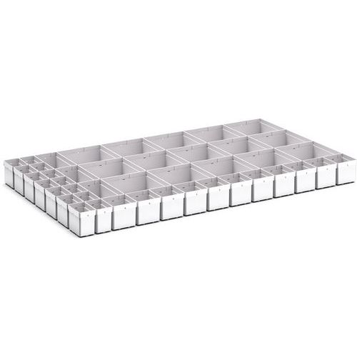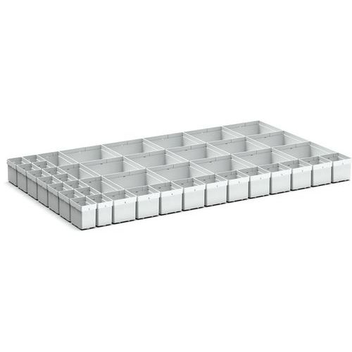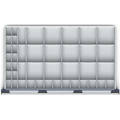 | Productnaam | Assortiment EKK06100. 43 kleingoedbak, Breedte: 1050 mm, Diepte: 650 mm, Hoogte: 100 mm, Kleur: Lichtgrijs |