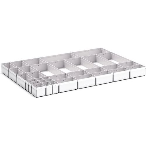 | Productnaam | Assortiment EKK07100. 33 kleingoedbak, Breedte: 1050 mm, Diepte: 650 mm, Hoogte: 100 mm, Kleur: Lichtgrijs |