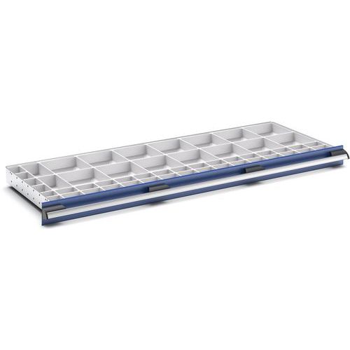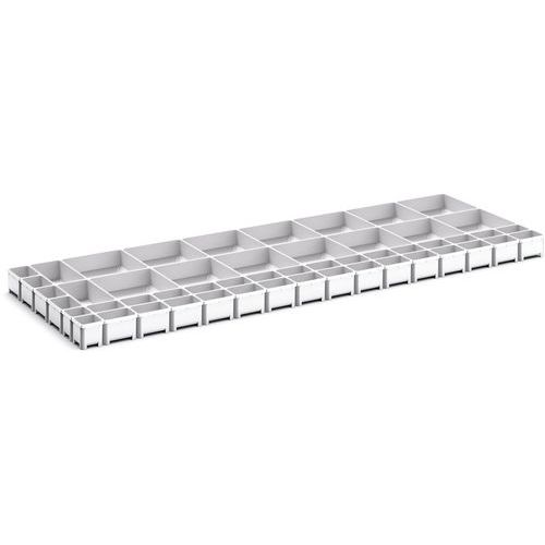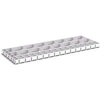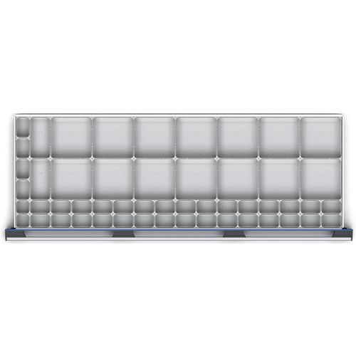 | Productnaam | Assortiment EKK3575. 52 kleingoedbak, Breedte: 1300 mm, Diepte: 525 mm, Hoogte: 75 mm, Kleur: Lichtgrijs |