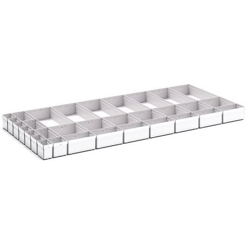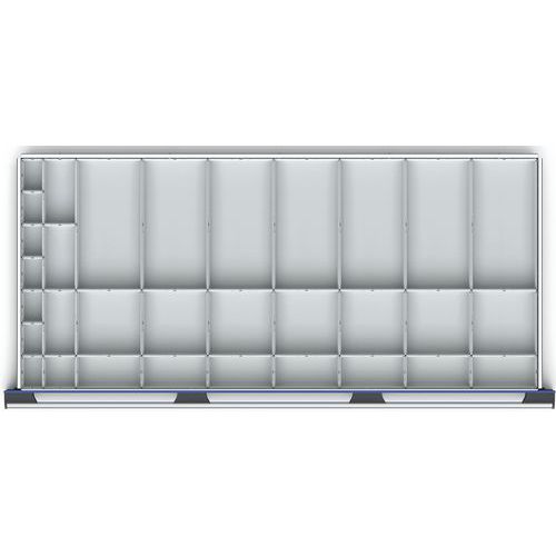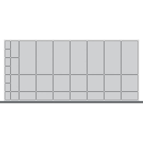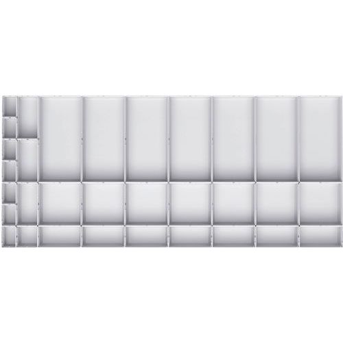 | Productnaam | Assortiment EKK36100. 32 kleingoedbak, Breedte: 1300 mm, Diepte: 650 mm, Hoogte: 100 mm, Kleur: Lichtgrijs |