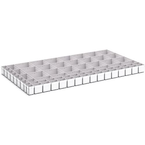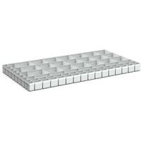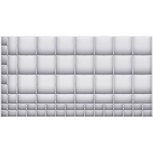 | Productnaam | Assortiment EKK37100. 71 kleingoedbak, Breedte: 1300 mm, Diepte: 750 mm, Hoogte: 100 mm, Kleur: Lichtgrijs |