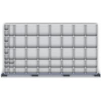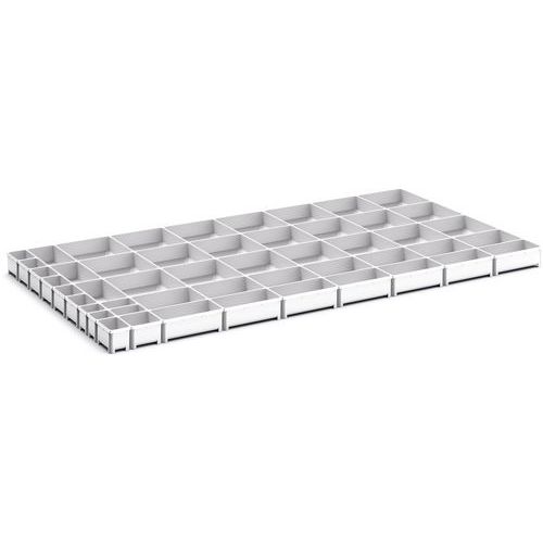 | Productnaam | Assortiment EKK3775. 50 kleingoedbak, Breedte: 1300 mm, Diepte: 750 mm, Hoogte: 75 mm, Kleur: Lichtgrijs |