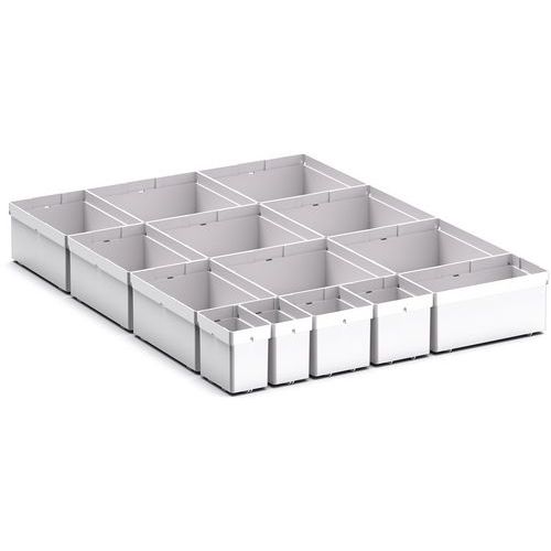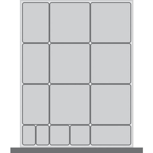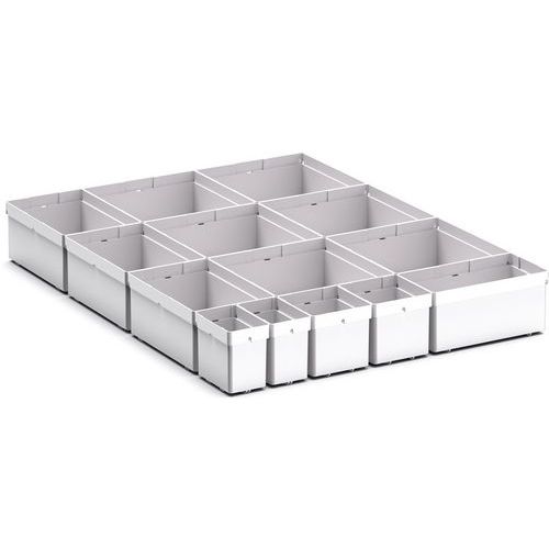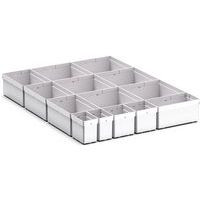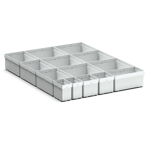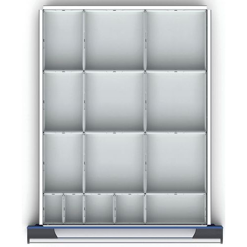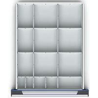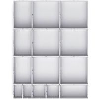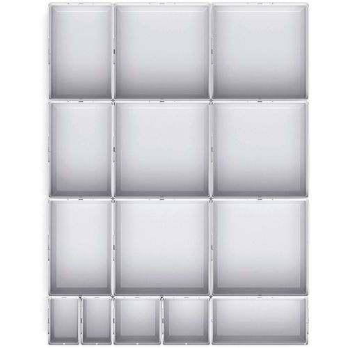 | Productnaam | Assortiment EKK6100. 14 kleingoedbak, Breedte: 525 mm, Diepte: 650 mm, Hoogte: 100 mm, Kleur: Lichtgrijs |