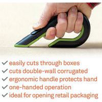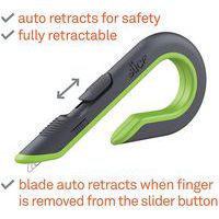 Voor extra veiligheid wordt het mes automatisch ingetrokken wanneer de schuifknop wordt losgelaten.