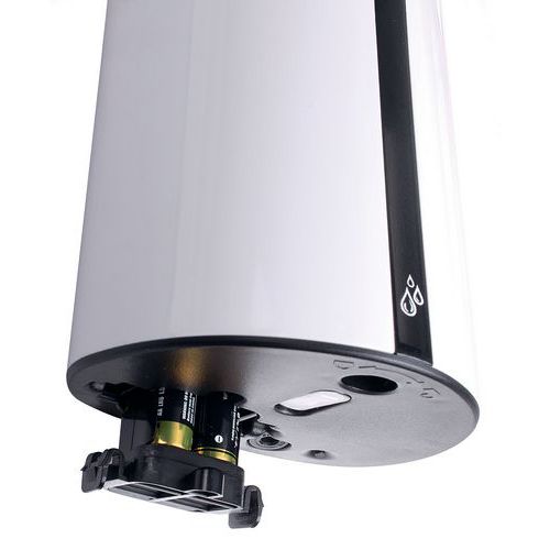 Werkt op 4 LR6-batterijen (niet meegeleverd). Sleutel waarmee de tank van bovenaf kan worden vergrendeld. Zuinig: geeft bij elk gebruik de juiste hoeveelheid desinfectiegel af. Automatische dispenser die contact met de handen voorkomt. Compatibel met alle hydroalcoholische gels (behalve microkorrels) (niet meegeleverd).
