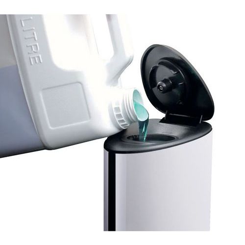 Met infraroodsensor voor automatische distributie. Reservoir met een inhoud van 0,850 l en controlevenster voor het verbruiksartikel. Debietregeling: niveau 1 voor 0,5 ml en niveau 2 voor 2,5 ml. Het verbruiksartikel is eenvoudig te plaatsen en te verwijderen.