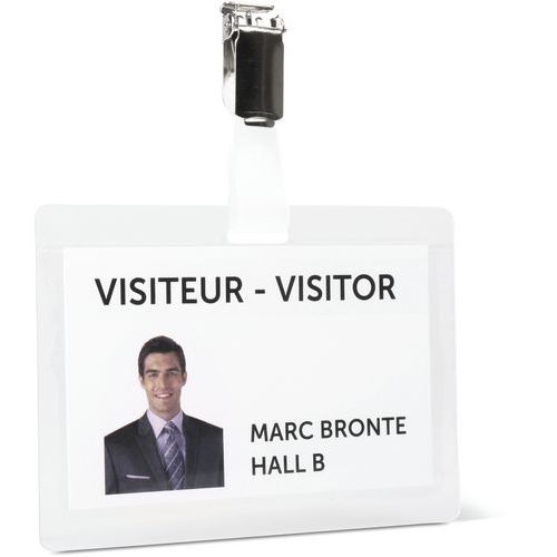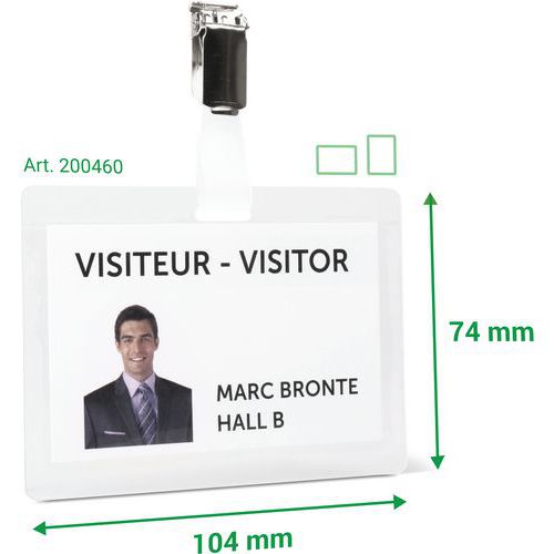 | Productnaam | Badge zelflaminerend met clips, transparant, Kleur: Transparant, Lengte: 104 mm, Breedte: 74 mm |