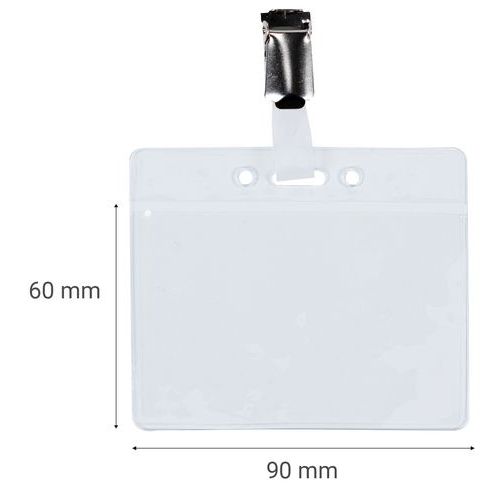 Badgehouder horizontaal met clip, Kleur: Transparant, Art der Befestigungen: Clip, Lengtes: 90 mm
