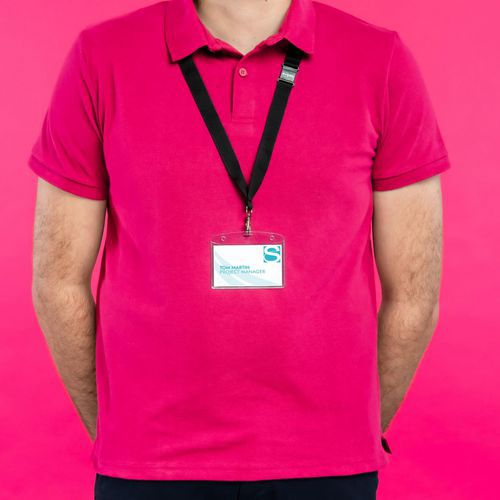 Deze badgehouder met sleutelkoord dient voor de identificatie van personen: personeel van het bedrijf, bezoekers van buiten het bedrijf die via de receptie moeten komen, of deelnemers aan evenementen.
