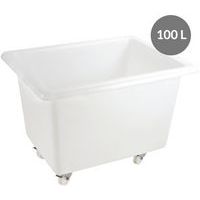 De economische oplossing om eenvoudig bakken met een groot volume te verplaatsen. Roestvrij stalen wielen en schroeven. Belastbaarheid is slechts een aanwijzing (hangt af van de verdeling van de belasting en de gebruikstemperatuur). Het aantal L komt overeen met een tot de rand gevulde bak. Bij een hoge belasting (220 L, 310 L en 500 L) van de bak op langere afstanden, kunt u beter gemengde wielen toepassen voor een betere manoeuvreerbaarheid of een wagenbak