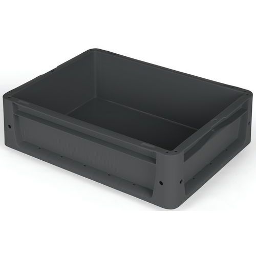 - Stapelbare euronormbak met versterkte dichte bodem en dichte wanden.