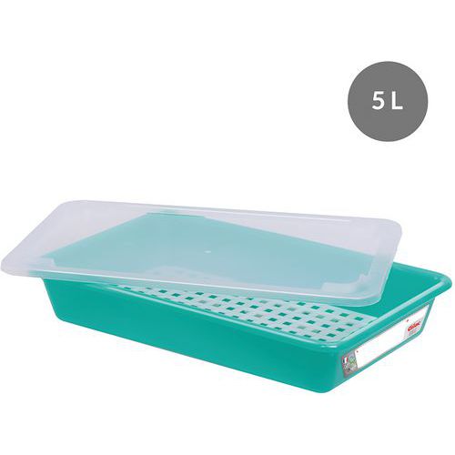 Bak plat 5 L tot 8 L HACCP met deksel en rooster, Totale inhoud: 5 L, Nestbaar: nee, Totale hoogte: 85 mm Bak plat 5 L tot 8 L HACCP met deksel en rooster, Totale inhoud: 5 L, Nestbaar: nee, Totale hoogte: 85 mm