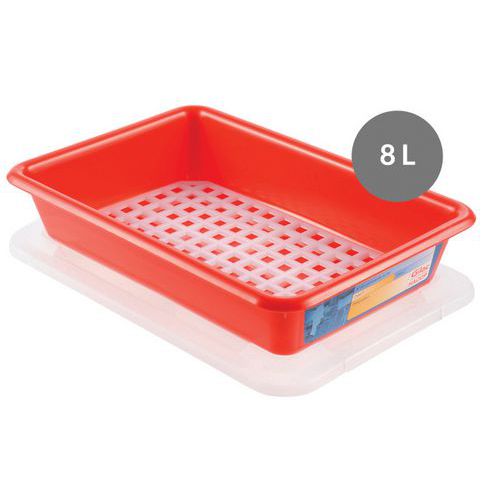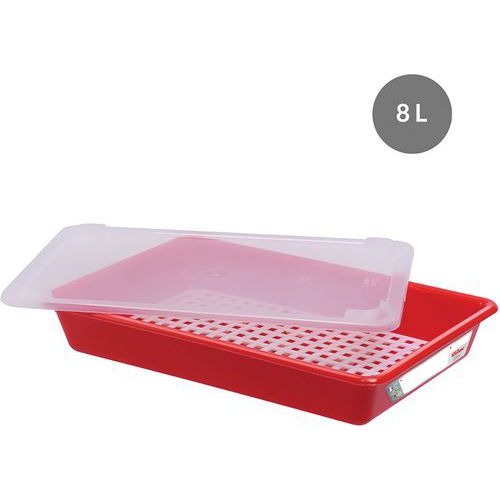 Bak plat 5 L tot 8 L HACCP met deksel en rooster, Totale inhoud: 8 L, Nestbaar: nee, Totale hoogte: 90 mm Bak plat 5 L tot 8 L HACCP met deksel en rooster, Totale inhoud: 8 L, Nestbaar: nee, Totale hoogte: 90 mm