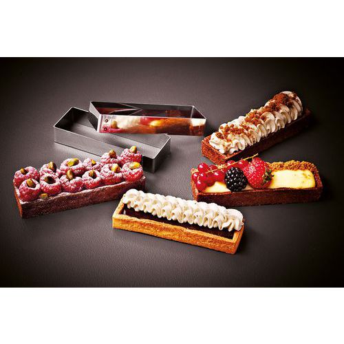 | Productnaam | Bakframe voor lange vingertaart rechthoek Mozaik, Hoogte: 2 cm, Lengte: 120 mm, Materiaal: Roestvrij staal |