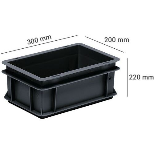 Euronorm-stapelbakken van geleidingsmateriaal met gesloten wanden en bodem of compact en twee Shell handgrepen of dichte handgrepen. Gemaakt in de EU