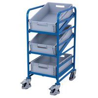- Etagewagen breed met 3 etages voor Euronorm-bakken, met een mechanisch gelaste constructie van buisstaal.