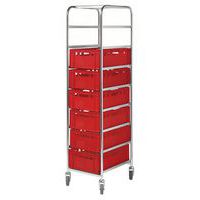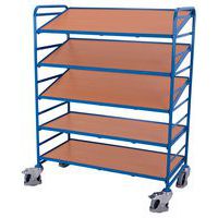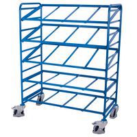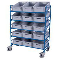 - Etagewagen breed met 5 etages met Euronorm-bakken, met een mechanisch gelaste constructie van buisstaal.