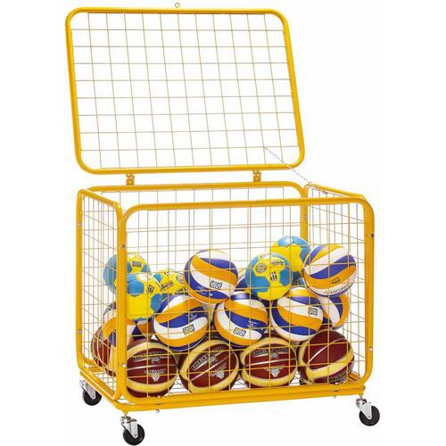 | Productnaam | Ballenwagen metaal op wielen, Materiaal: Staal, Hoogte: 90 cm, Breedte: 75 cm, Lengtes: 100 cm, Kleur: Geel |