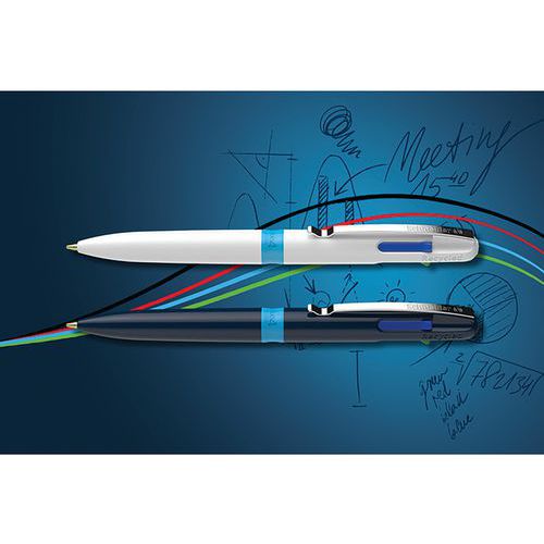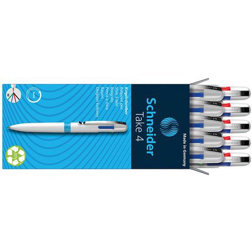 Balpen - Take 4 - behuizing wit - 4 schrijfkleuren - Schneider