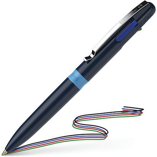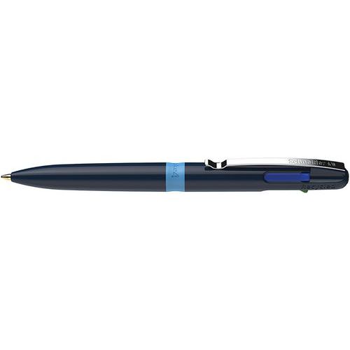 Balpen - Take 4 - blauwe behuizing - 4 schrijfkleuren - Schneider