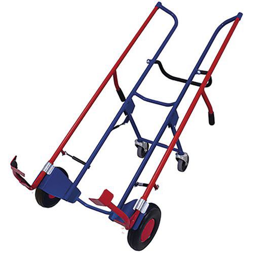 - Met 2 stuks uitklapbare zwenkwielen als steunwiel voor het gemakkelijk rijden bij volle belasting, met gasveer