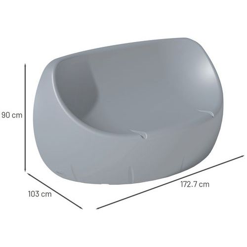 Zeer comfortabel. In massageverfd rotatiegegoten polyethyleen, gemiddelde dikte 7 mm. Plaatsing binnen of buiten omdat het gebruikte polyethyleen weer- en UV-bestendig is (temperatuur: -30°C/+60°C). Onderhoud: hogedrukreiniger (1x per jaar). 10 standaardkleuren. Module te ballasten met zand (niet inbegrepen) of aan de grond te bevestigen met bevestigingsplaten (4 verankeringszones) + optionele draadstangen. Andere standaard RAL-kleuren op aanvraag.
