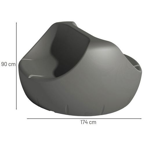 In in de massa gekleurd rotatiegegoten polyethyleen, gemiddelde dikte 7 mm. Installatie binnen of buiten doordat het gebruikte polyethyleen weer- en UV-bestendig is (temperatuur: -30°C/+60°C). Onderhoud: hogedrukreiniger (eenmaal/jaar). 10 standaardkleuren. Module om te ballasten met zand (niet inbegrepen) of om aan de grond te bevestigen met bevestigingsplaten (4 verankeringszones) + optionele draadstangen. Andere standaard RAL's op aanvraag.
