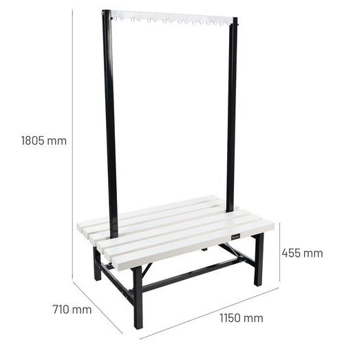 | Productnaam | Bank met dubbele kapstok pvc wit, Zitting materiaal: PVC, Aantal haken: 16 |