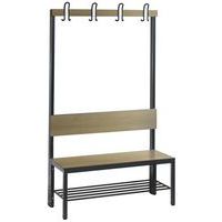 Bank met kapstok hout, met rugleuning Basic Plus, Zitting materiaal: Hout multiplex, Aantal haken: 4 Bank met kapstok hout, met rugleuning Basic Plus, Zitting materiaal: Hout multiplex, Aantal haken: 4