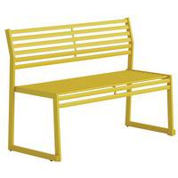 Bank met rugleuning van gegalvaniseerd staal, Kleur: Geel, Zitting materiaal: Warm gegalvaniseerd staal Bank met rugleuning van gegalvaniseerd staal, Kleur: Geel, Zitting materiaal: Warm gegalvaniseerd staal