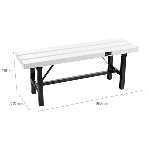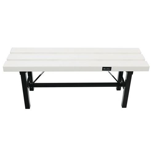 Bank van wit PVC - Te monteren - Manutan Expert Bank van wit PVC voor gebruik binnen. Constructie is vochtbestendig en eenvoudig te onderhouden. Lichte constructie voor eenvoudige montage en verplaatsing. Strak en functionel ontwerp, ideaal voor gemeenschappelijke ruimtes. Perfect geschikt voor kleedruimtes, pauzeruimtes en doorgangzones.