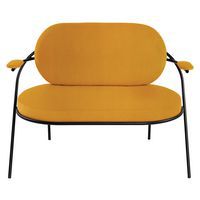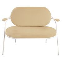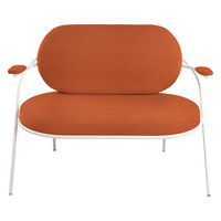 Modern ontwerp Langere levensduur: de zitting en rugleuning kunnen vervangen worden, de stof is niet verwijderbaar Stapelbaar Frame: buis Ø20 mm van 100% gerecycled staal met een epoxy-afwerking Zitting: multiplex paneel, dikte 12 mm Voering zitting: polyurethaanschuim 30 kg/m3, dikte 70 mm Voering rugleuning: polyurethaanschuim 30 kg/m3, dikte 60 mm Voering armleggers: polyurethaanschuim 30 kg/m3, dikte 15 mm