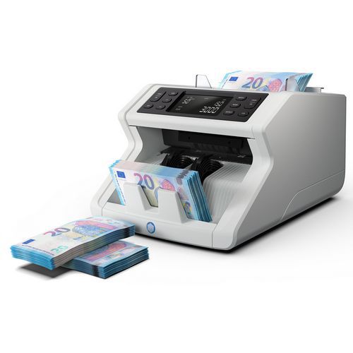 Telt de hoeveelheid bankbiljetten voor alle valuta's en tevens de waarde van maximaal 1200 bankbiljetten per minuut.