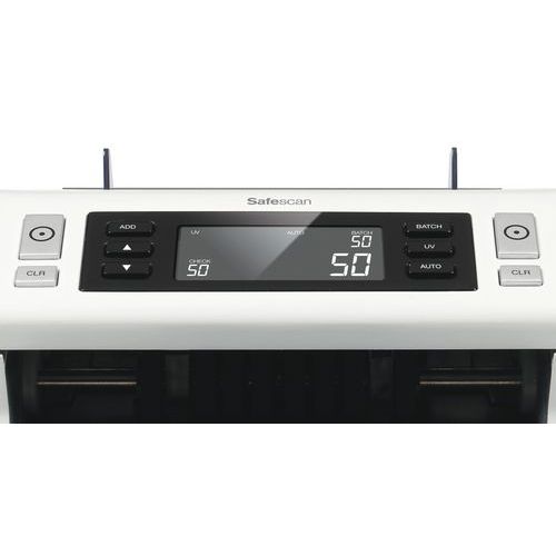 - Bankbiljetteller Safescan die de hoeveelheid gesorteerde bankbiljetten voor alle valuta's telt.