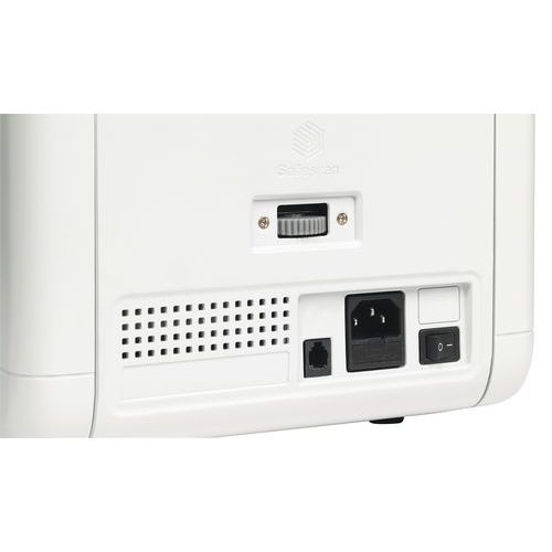 - Onderbreekt de telling en produceert een akoestisch en visueel alarm wanneer er vermoedelijk een vals biljet wordt gedetecteerd.