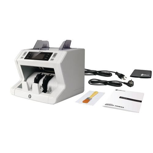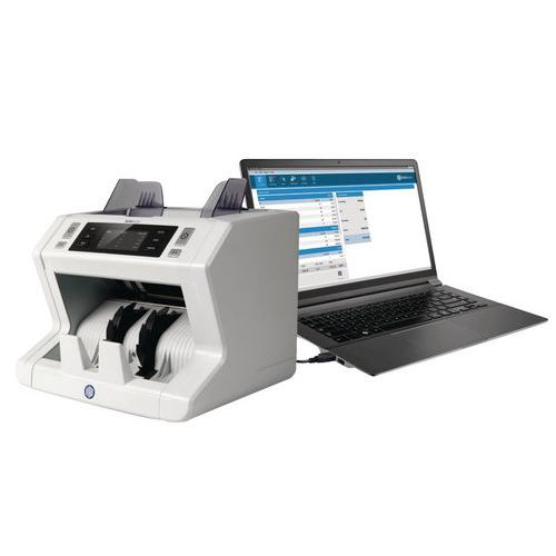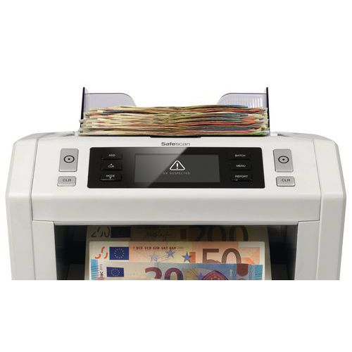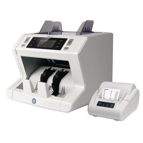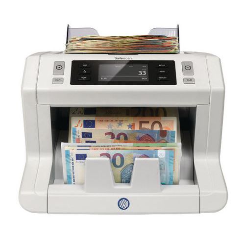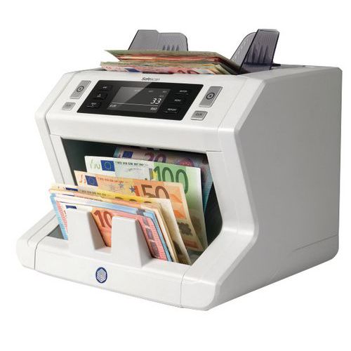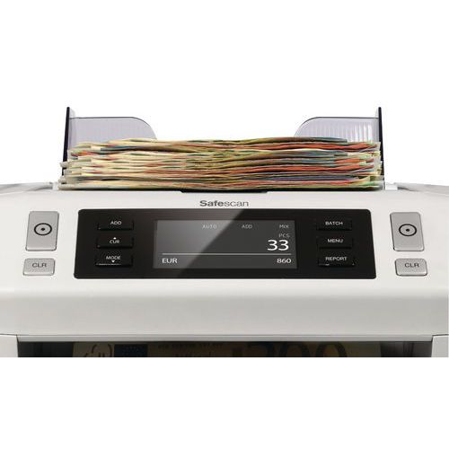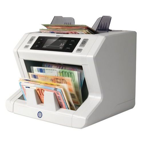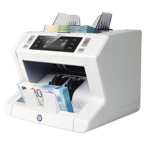 Telt automatisch gemengde Euro-biljetten en detecteert valse biljetten met 100%. Telt 1500 biljetten per minuut. Houdt automatisch het aantal en de getelde waarde bij van elke soort. Detectie van valse Euro-biljetten op 7 punten: uv, inkt, magnetisch, metaal filigraan, infrarood, kleur, dikte en afmeting.