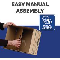 Snel inklapbaar en eenvoudig in elkaar te zetten. Plat verpakt voor eenvoudige zelfmontage. De opgegeven afmetingen betreffen de buitenkant. Verstevigde scheurbestendige handgrepen zodat u de doos comfortabel kunt dragen. Het diepe, vergrendelbare, los te maken deksel blijft op zijn plaats zitten voor veilig opbergen. Gladde, gerolde randen zorgen voor extra stevigheid en voorkomen papiersnijwonden.
