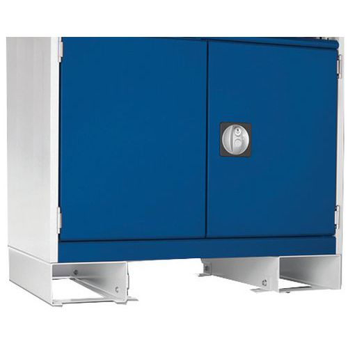Basishoogte 100 mm. Met vorkdoorgangen. Toegestane belasting: 1 ton. Verwijderbare gevel. Zeer eenvoudige montage. Alleen RAL 7035 grijze kleur.