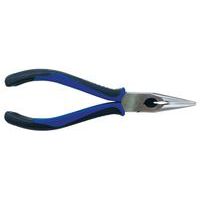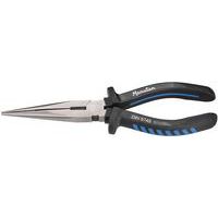 - Halfronde tang met lange en rechte bek, fijn geribbeld.