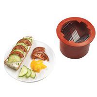 - Handmatige tomatensnijder snijdt u zelfs erg rijpe* tomaten, in plakjes van 6 mm, ideaal voor salades, hamburgers, broodjes, enz.