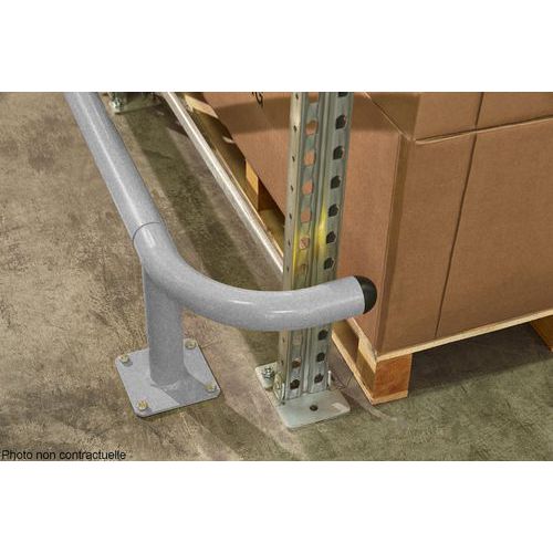 - Beugel op voetplaat, te bevestigen op de vloer voor bescherming van stellingen, wand, paal.