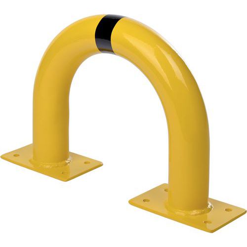 Robuuste stalen beschermbeugel die wordt gebruikt om apparatuur of machines te beschermen tegen klappen van transportmachines. Goede zichtbaarheid dankzij de tweekleurige geel/zwarte kleur. Geschikt voor binnen- en buitengebruik. Bevestigingsmateriaal niet inbegrepen. TÜV-certificaat.