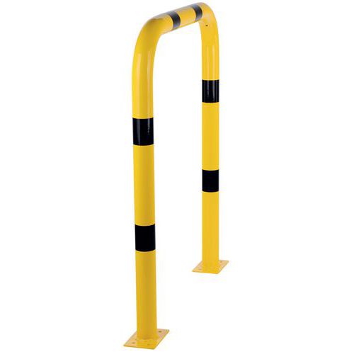 Robuuste stalen beschermbeugel die wordt gebruikt om apparatuur of machines te beschermen tegen klappen van transportmachines. Goede zichtbaarheid dankzij de tweekleurige geel/zwarte kleur. Geschikt voor binnen- en buitengebruik. Bevestigingsmateriaal niet inbegrepen. TÜV-certificaat.